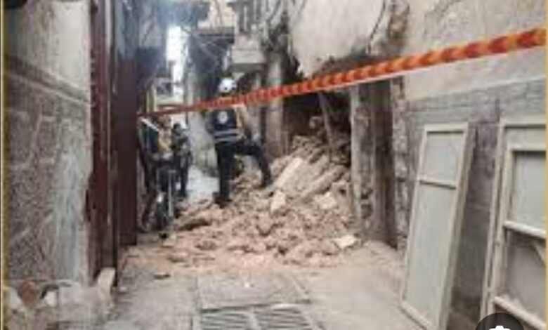 “الأمطار الغزيرة تتسّبب بانهيارات جزئيّة في دمشق”.
