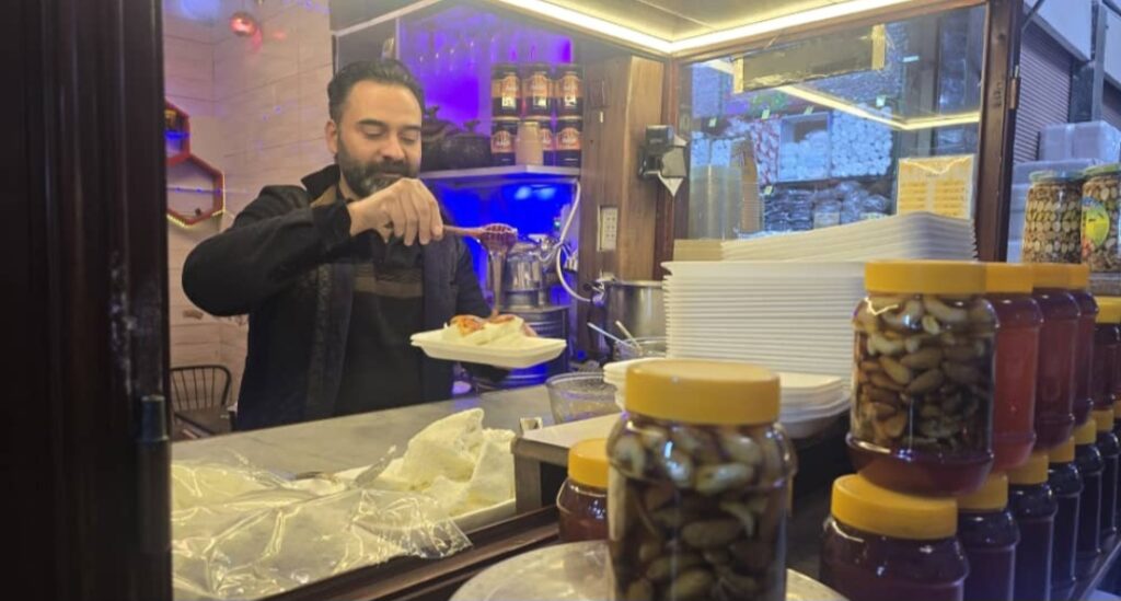 في زاوية قريبة، يقف محمد زكي مستنداً إلى شباك صغير يطل على الممر، يراقب الحركة بين محله ومحل آخر يملكه في الجهة المقابلة، ويلجأ إليه حين يزدحم المكان.يقول زكي: “أعمل في هذه المهنة منذ نحو 33 عاماً، ونحن من أقدم محال الكيمر في السوق، والناس تعرفنا من زمان بفطورنا”.
